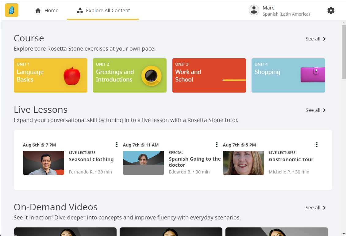 Rosetta Stone's primary learning application needed a modern upgrade from Flash. We developed a new client application in React and Javascript from the ground up. Later, I led a team that created their next-generation multi-user audio/video/content tutoring platform in React and TypeScript.